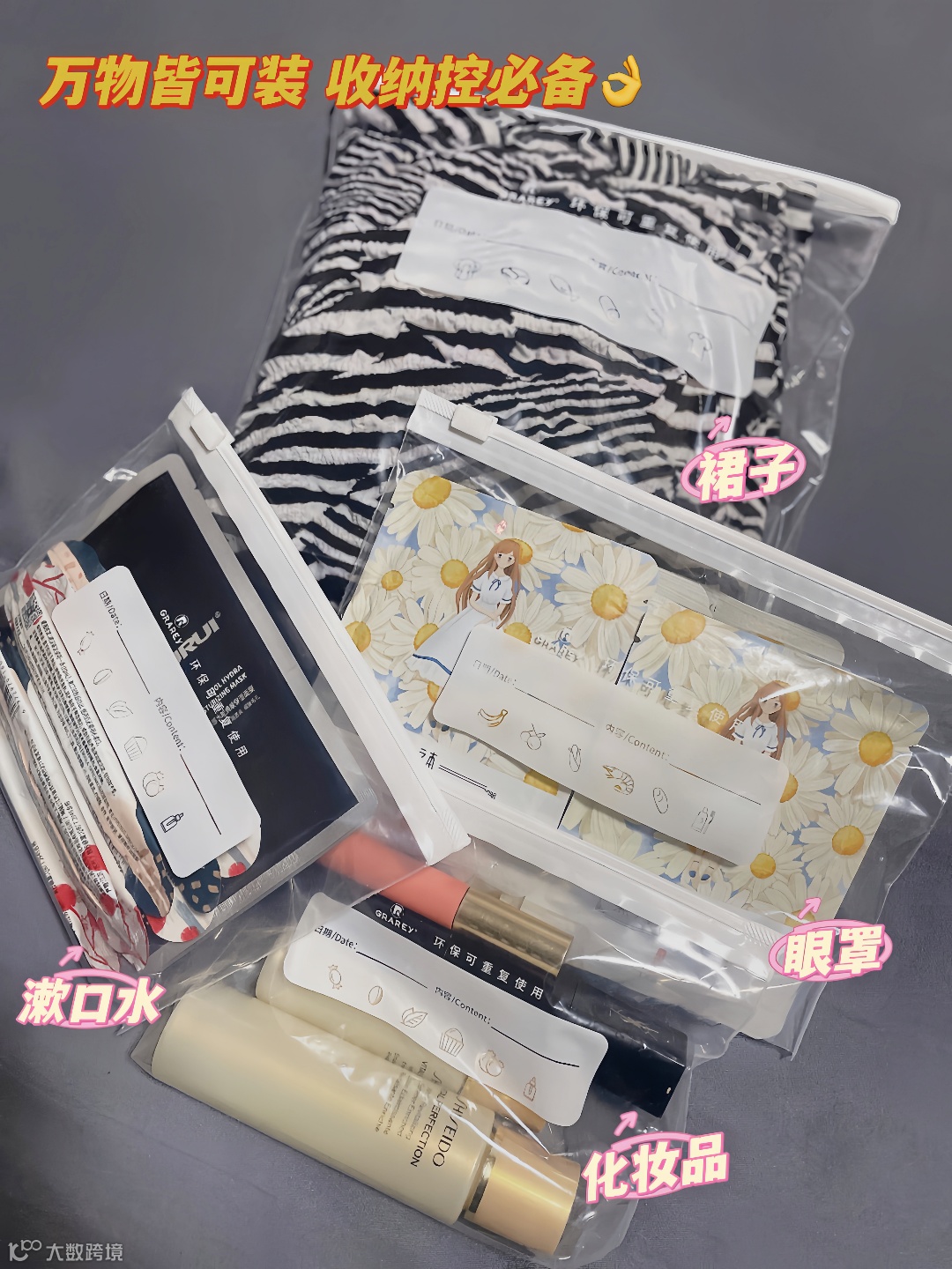 而且,为了更好的收纳管理,在袋子上的白色图层区域可手写,用标记笔此处标注放入所装物品及时间。