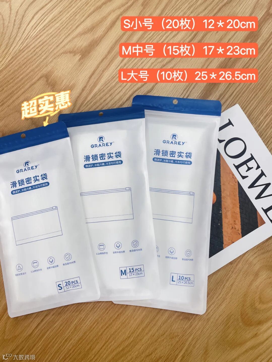 这套GRAREY滑锁密实袋从小到大一共有 3 种规格:S、M、L