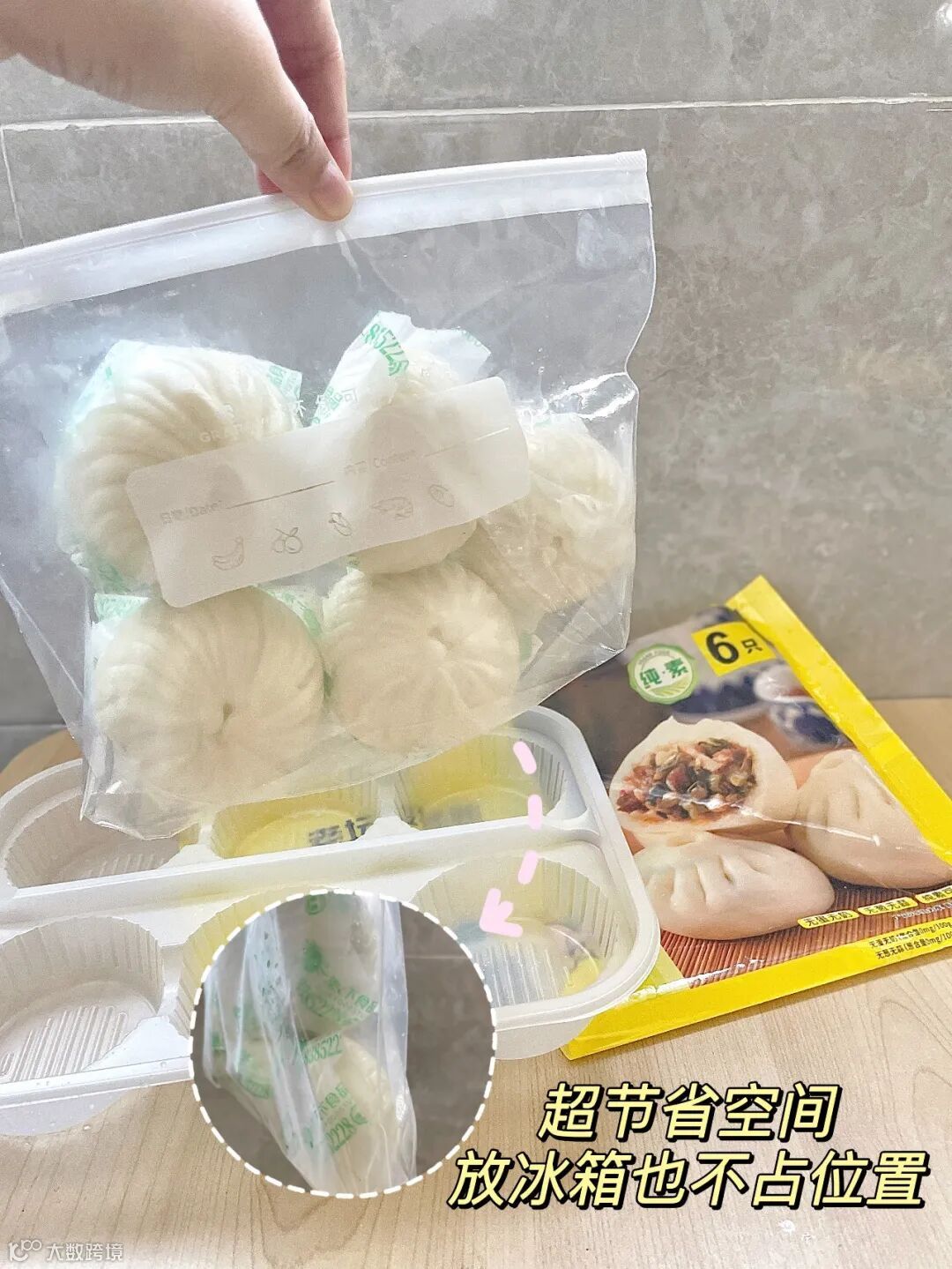 普通的保鲜袋放入食物后软踏踏的不成型,放进冰箱也还是一样占位置,翻找起来也麻烦。