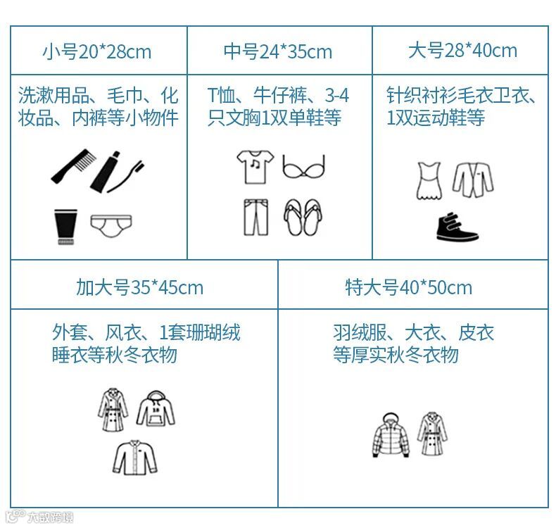 适合装T桖、牛仔裤、3-4件文胸、1双棉拖鞋等