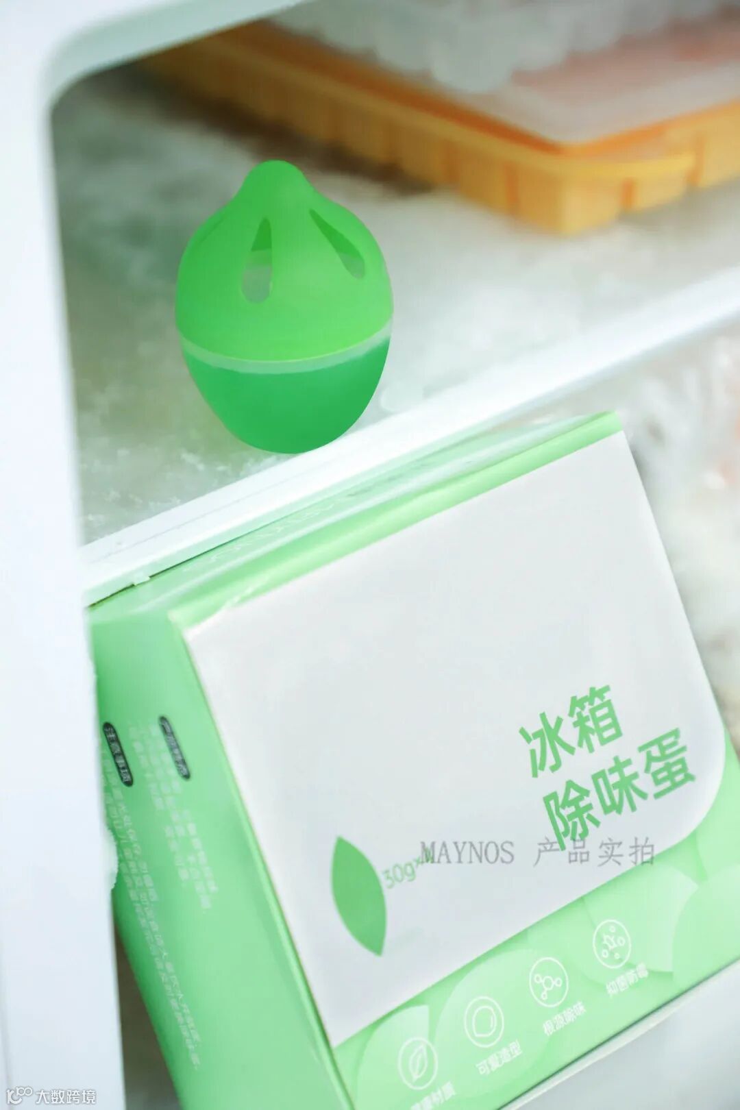 MAYNOS的冰箱除味蛋,内部凝胶采用的是食品级别卡拉胶;外壳采用的是pp食品级别可接触塑料