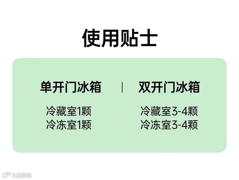 如果冰箱内异味较大,或者是比较大的双开门冰箱,可以直接放上3-4颗,去异味效果更好哈~