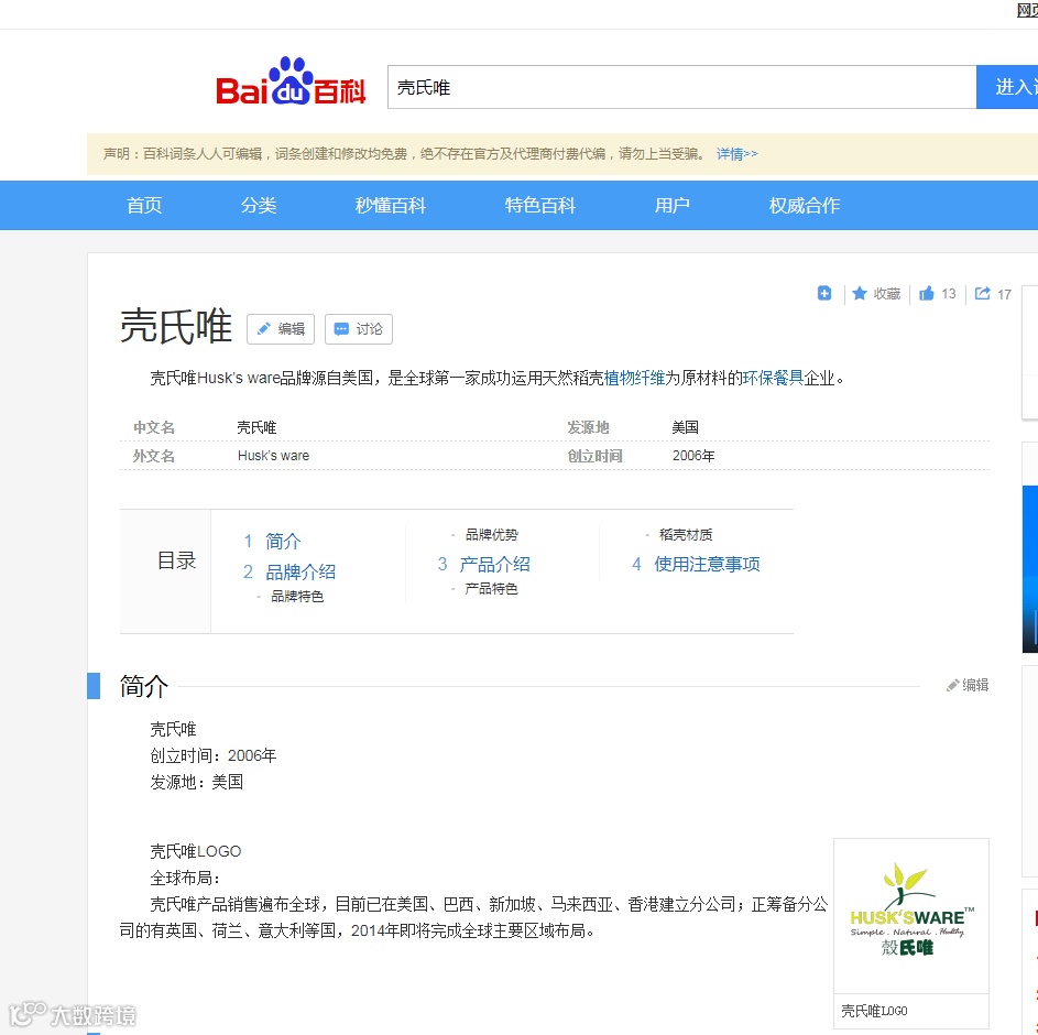 壳氏唯Husk’s ware品牌源自美国,是全球第一家成功运用天然稻壳植物纤维为原材料的环保餐具企业。