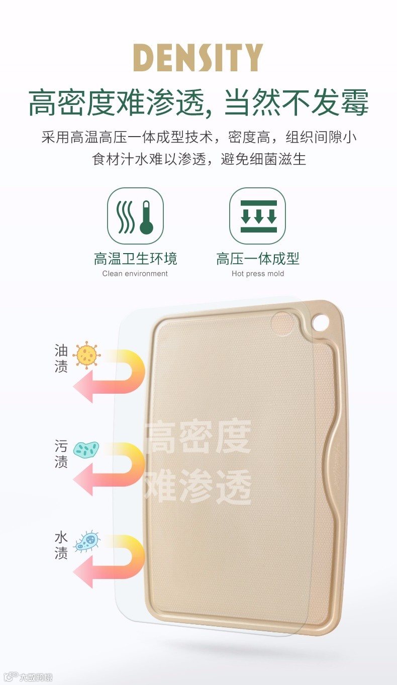 因为壳氏唯砧板的抗菌防霉材质,加上高密度防渗水和高强度少刀痕的设计优势,所以品牌方承诺“霉一赔三”,也正是因为这样的发明专利,壳氏唯在美国、新加坡和日本等20多个国家都很畅销。