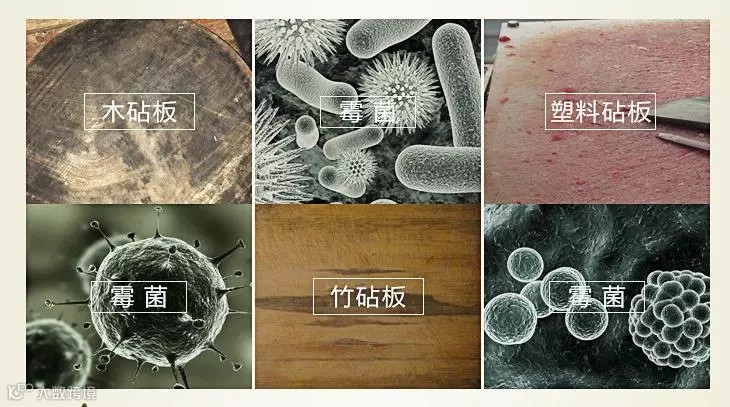 国际权威机构与中科院抗菌检测认证,中科院也给出了权威的抗菌检测报告,以半年为例,这是4种砧板使用过后产生的细菌↓