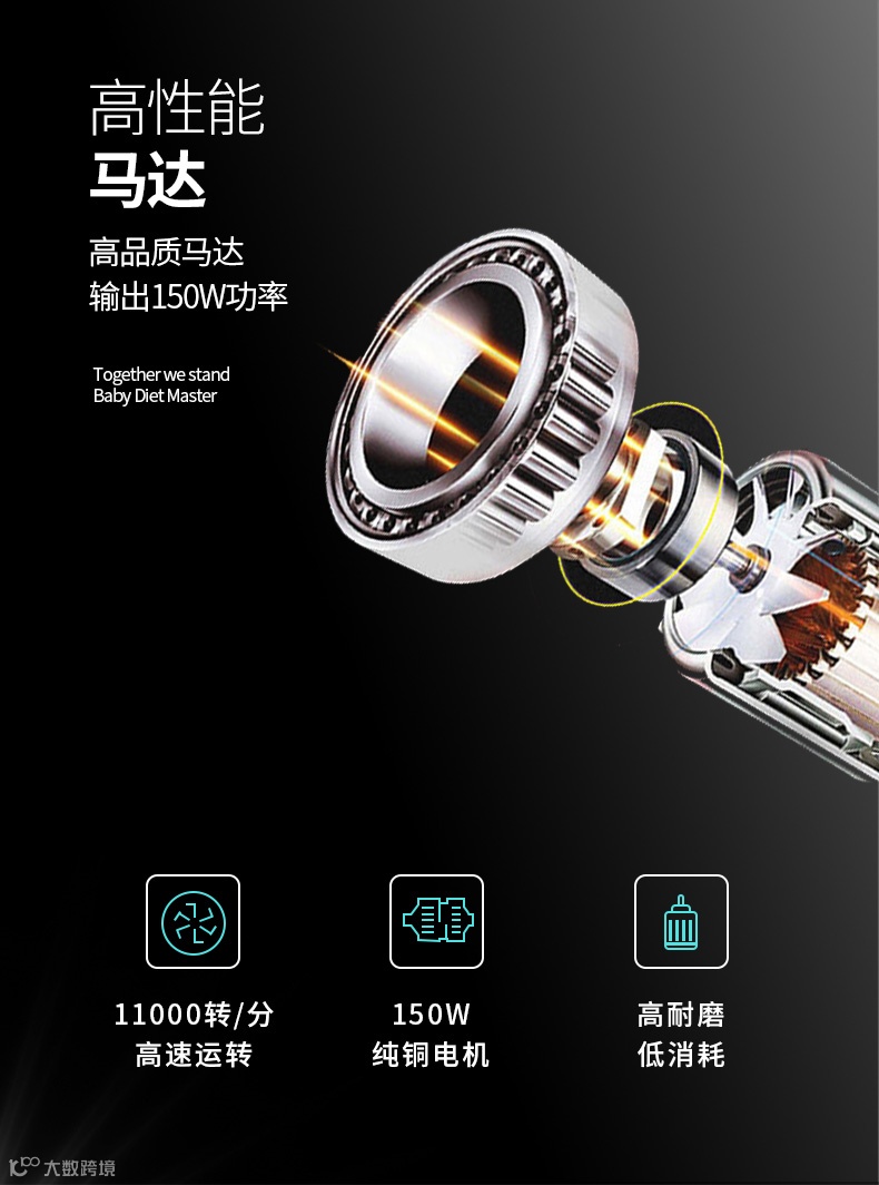 搅拌主机每分钟达到11000转,电机达到150W,高耐磨,低消耗