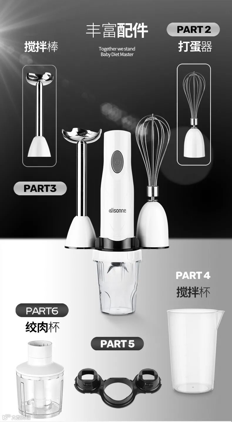 非常非常值得入手的一款全新多功能辅食搅拌机5件套来啦!无论你家里小孩想吃细腻一点的奶昔,水果泥,还是大人喜欢喝果汁,或者想自己动手做一些蛋糕,饼干,或者想自己动手包饺子,做肉饼,肉松等。只要拥有法国蒂颂尼多功能辅食搅拌机5件套,统统都能解决哦~