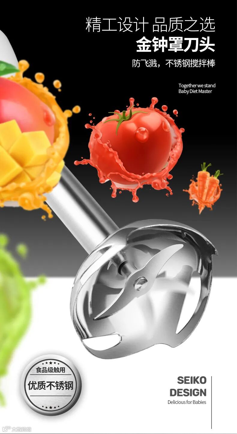 集打果汁,打肉馅,打鸡蛋,搅拌菜泥等功能于一体的多功能辅食搅拌机,不仅丰富了料理方式的多样性,而且还做出来的食物口感好。使用方便,符合营养学原理,帮助大家合理饮食!