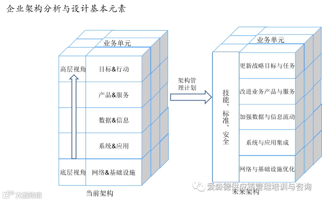 “企业”一词意味着整个供应链实体的高级别战略观点,而“架构”一词意味着分析、规划和开发该实体中所有资源的结构化框架,企业架构EA 主要是设计虚拟事物组织及其功能,而传统体系结构主要是设计物理事物。