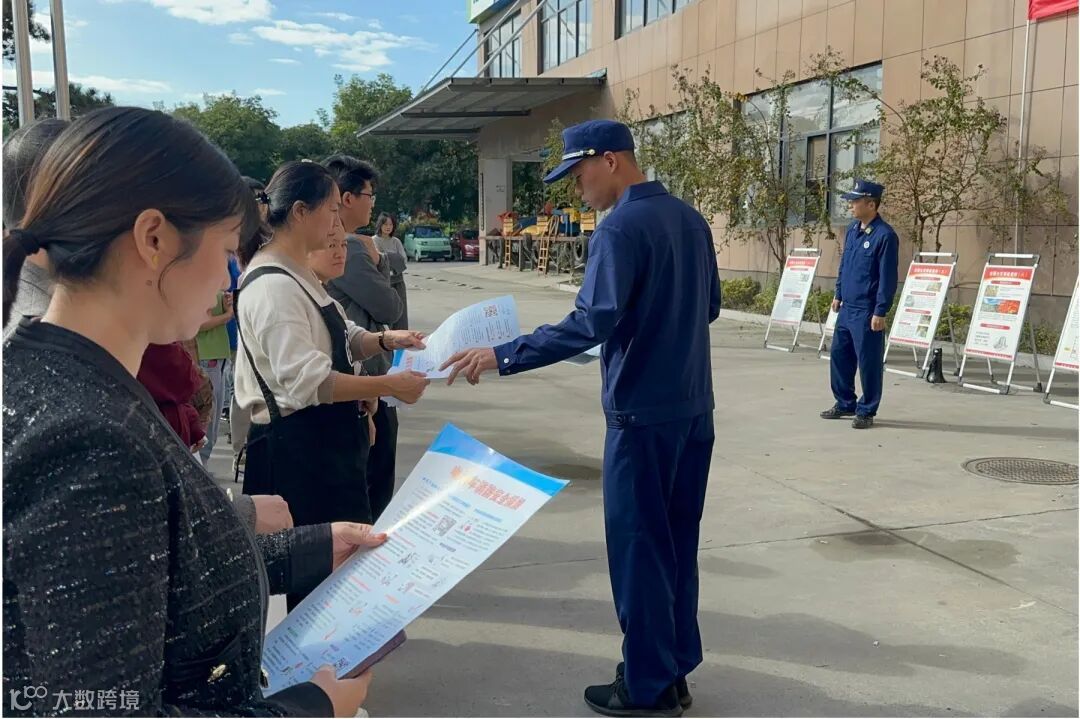 随着演练指令的下达,东部园区的快递员们迅速集结。禹越镇消防队准时到达现场,为演练提供专业支持。消防队员首先进行消防安全知识宣讲,涵盖火灾预防、初期扑救和火场逃生自救技巧,讲解专业且生动。