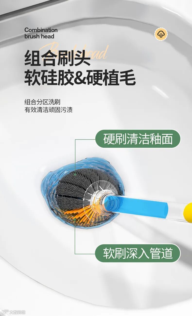 为了进一步提高清洁效果,这款马桶刷特别设计了组合刷头。