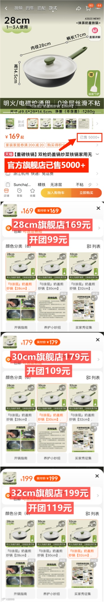 天猫在售价209-239元,开团99-119的价格,真的太太太香了!!!再送配套价值19.9元的硅胶锅铲!!纯纯捡漏价,不要错过!!