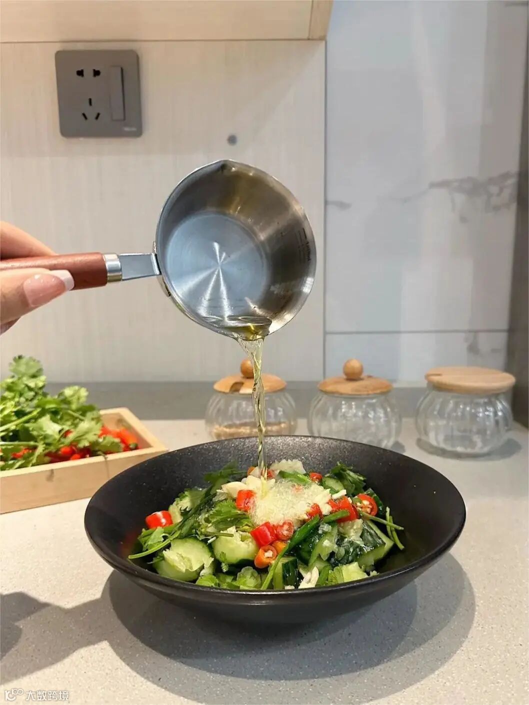 有了这个不锈钢泼油小锅,以后再也不用为了热那一点点油去动用大锅了!