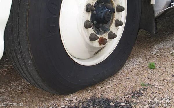 货车常年行驶在路上,难免会遇到碎石、铁块等异物,可能会将异物卡在轮胎花纹中。比如这样的: