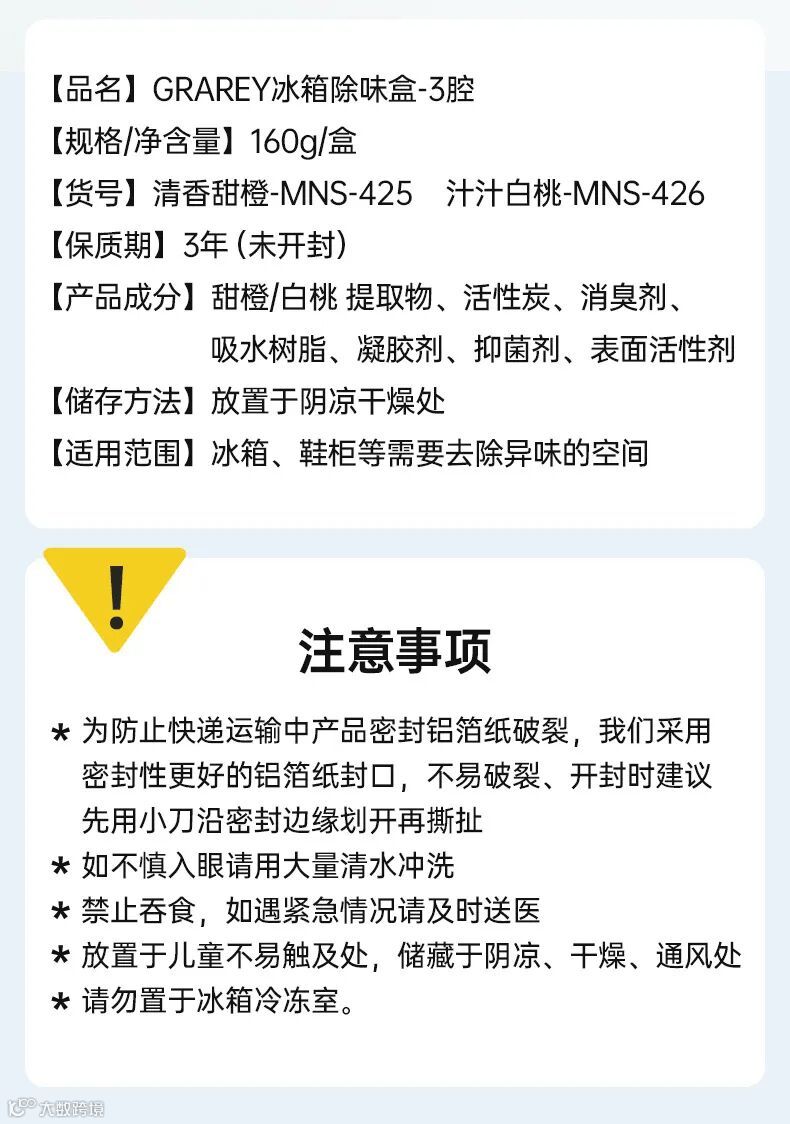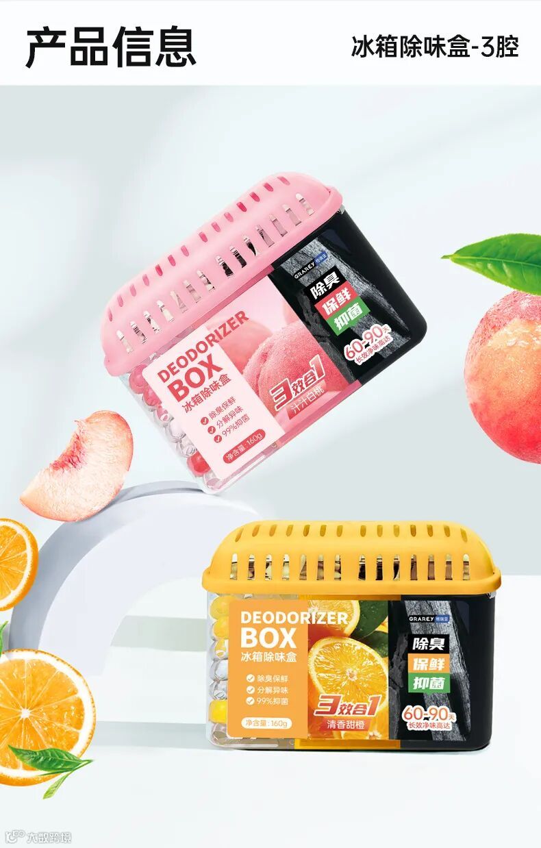 汁汁白桃➕清香甜橙两种味道❗️边除味边散香,抑菌保鲜持久去味,维持冰箱清新~