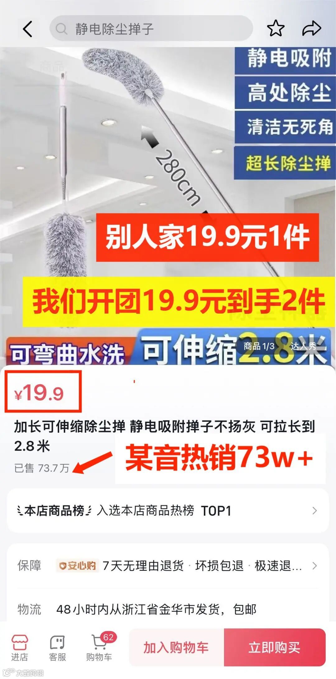 某音销量70万+的除尘掸子 ,19.9元只有1件