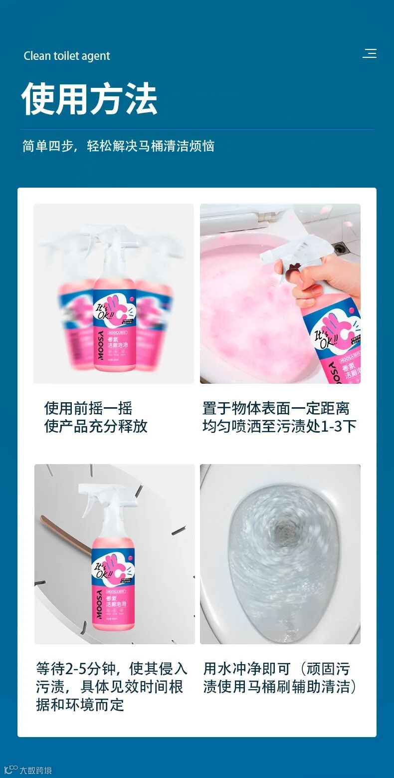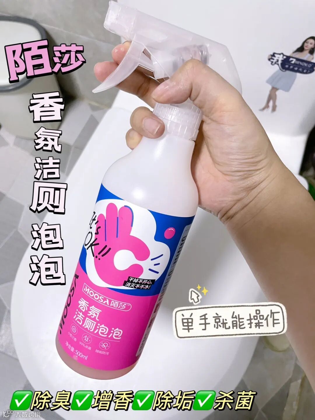 这款陌莎香氛洁厕泡泡,添加表面活性剂,往马桶上喷一喷,仅需几分钟,污垢一冲即净!