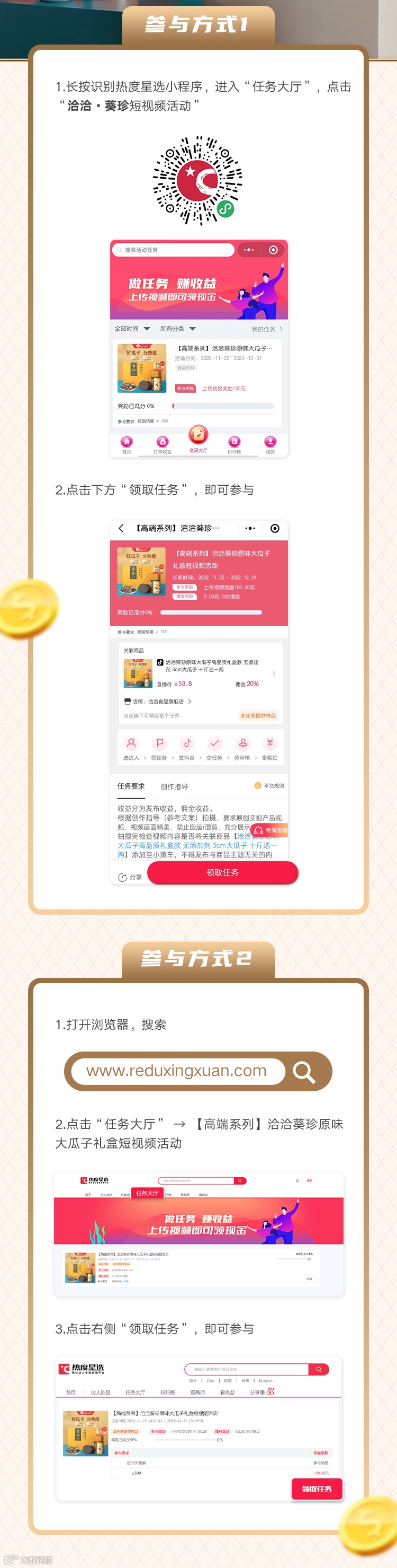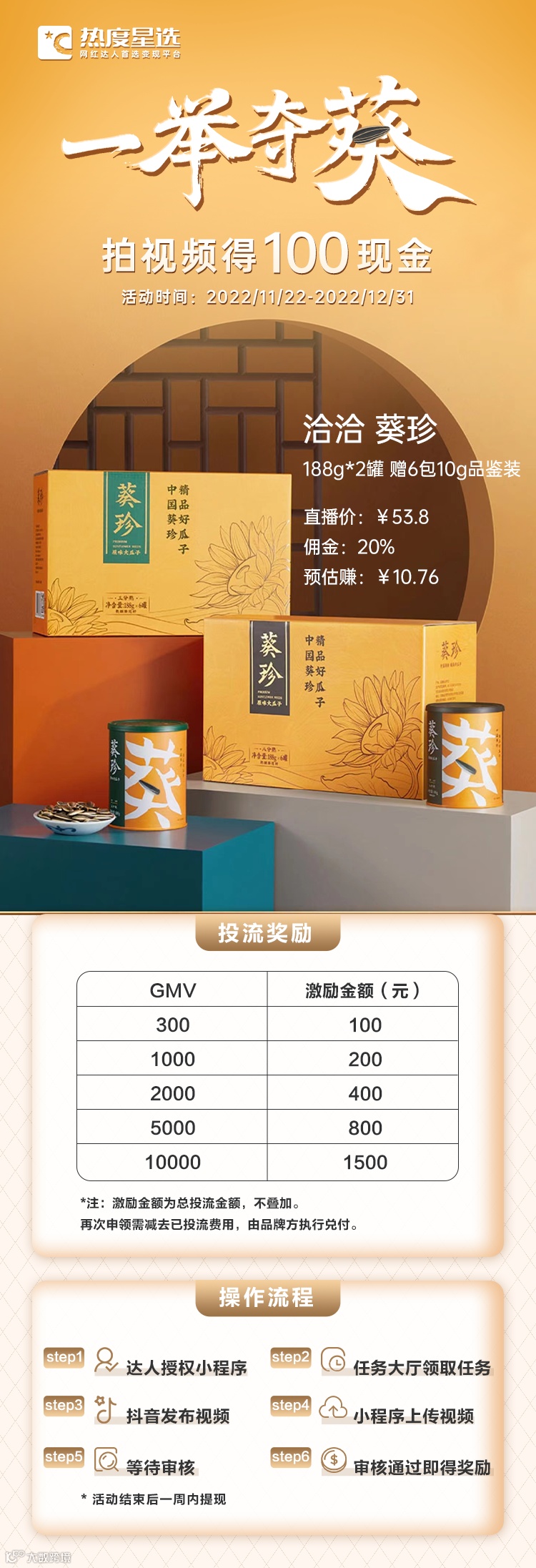 “热度星选”联合“洽洽”开启短视频活动啦~ 📱 拍视频即可获得100元现金奖励!