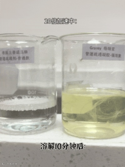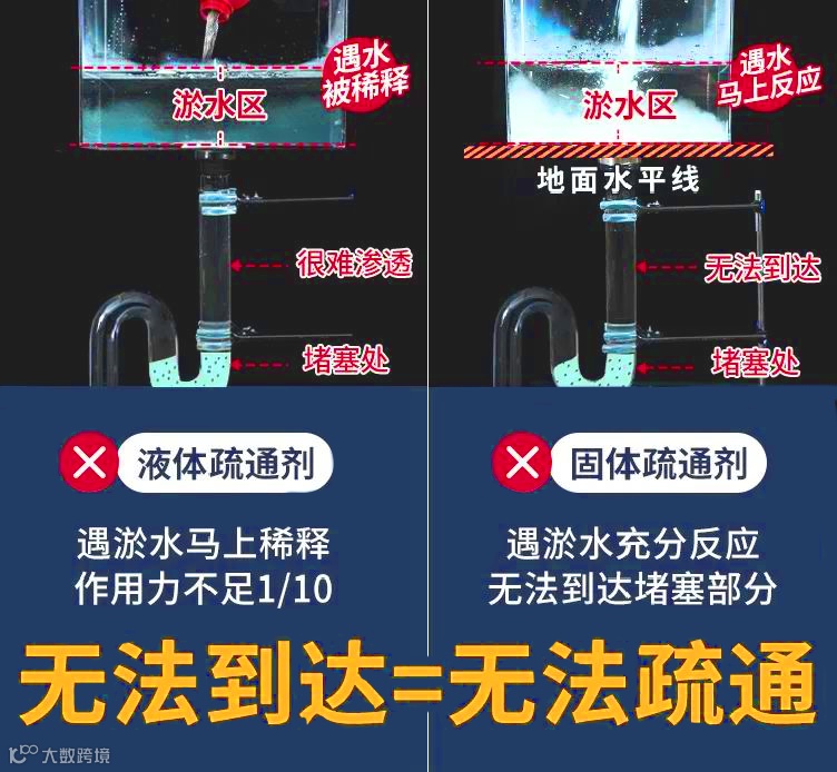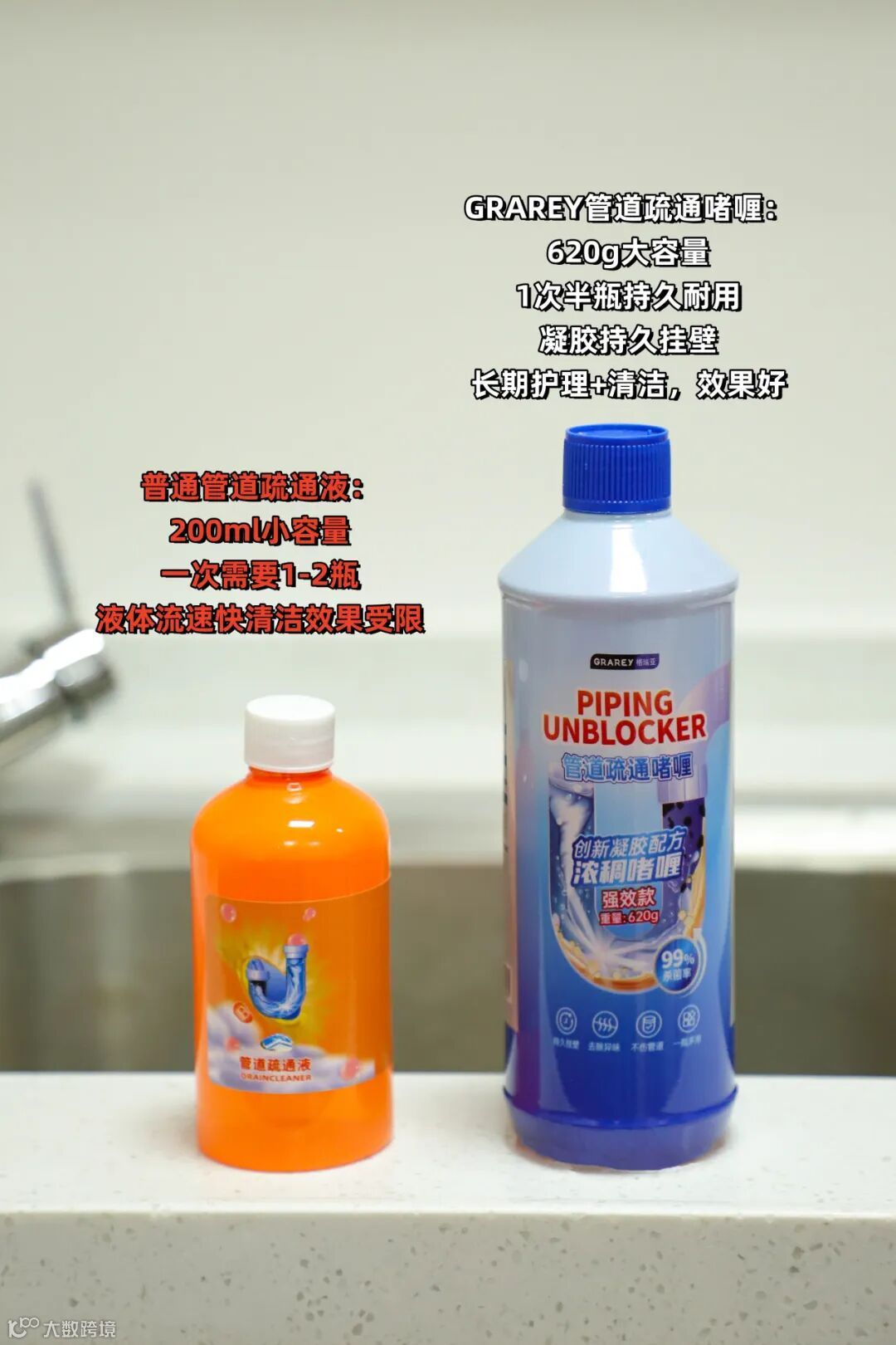 而液体状的,碰上污水就马上被稀释了,疏通效果还不如颗粒状的。