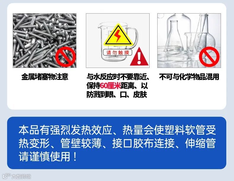 另外有些化学性质不稳定,遇热水会产生大量气体,有的还会释放热量,让冷水瞬间变成沸水。