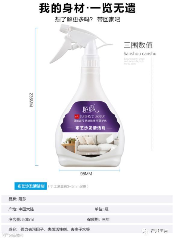 《京东商城销量全网第一》品牌:“陌莎”家居日化清洁品牌品名:布艺沙发清洁剂,京东商城1瓶售价39.9元,销量59000+,库存充足,产品主图和详情图以及视频都有,支持一件代发和批采入仓,价格超低,欢迎咨询价格,负责人郑俊南:15860783438(微信同步)!
