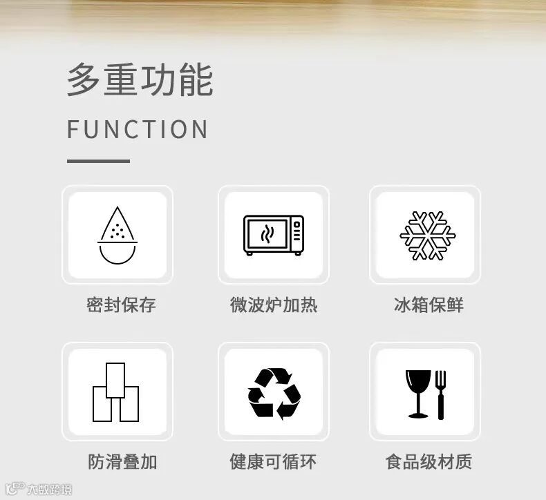 食品级 PP材质,带卡扣密封保存安全无异味!可加热!