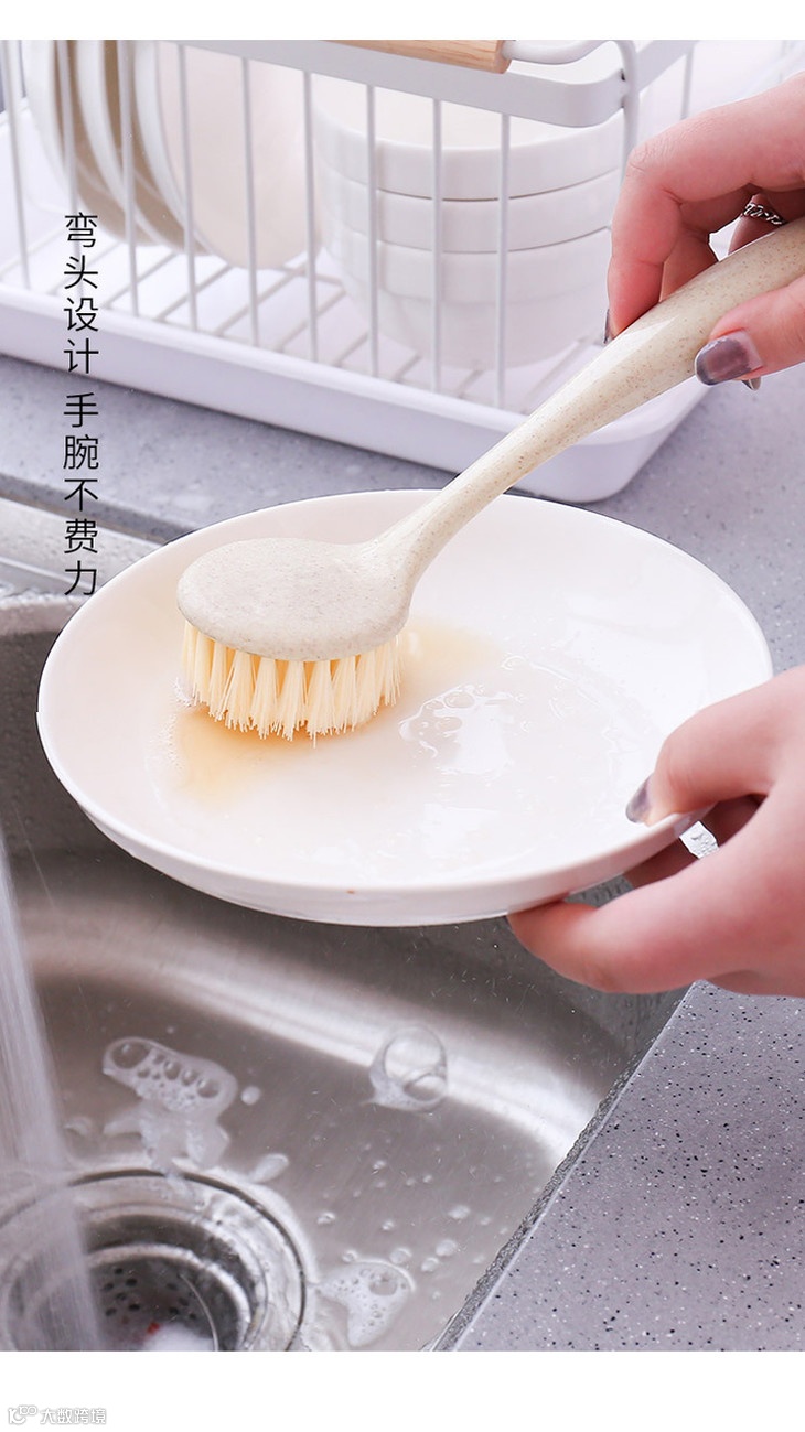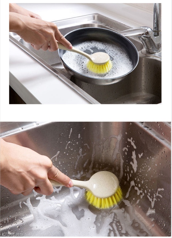 刷子的手柄很长,这样除了省力之外,还有一个好处,就是能让双手远离刷锅水。