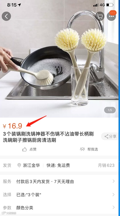 天猫上普通的品质(淡黄,毛-森驰不齐)价格5把卖到19.9元,3把卖到16.9元,销量也是月销几千+
