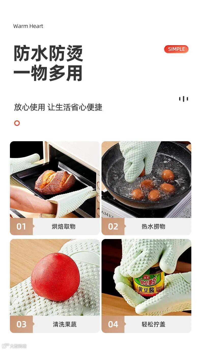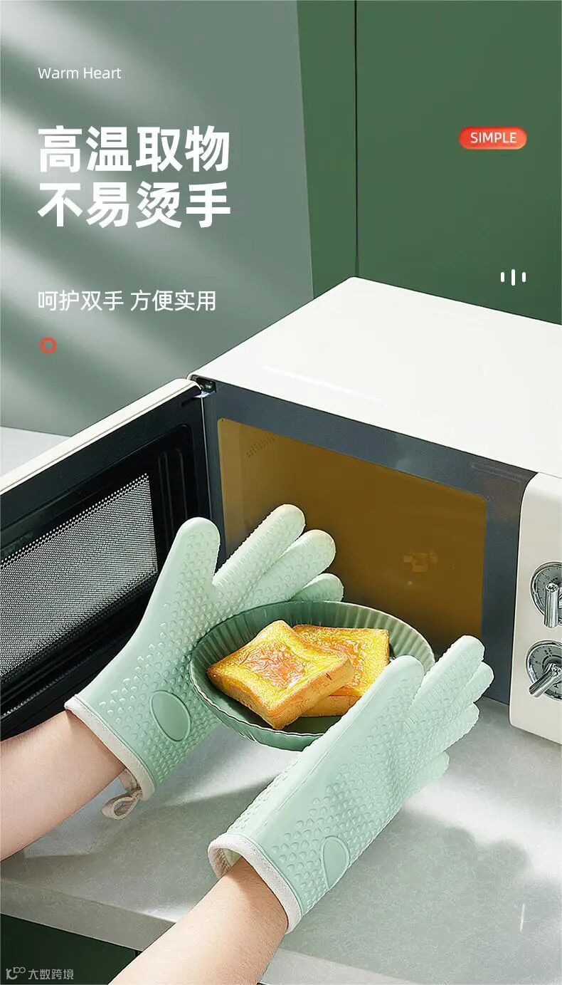 适用于烤箱、微波炉、烧烤、冰柜等,再也不用担心烫手的问题啦!