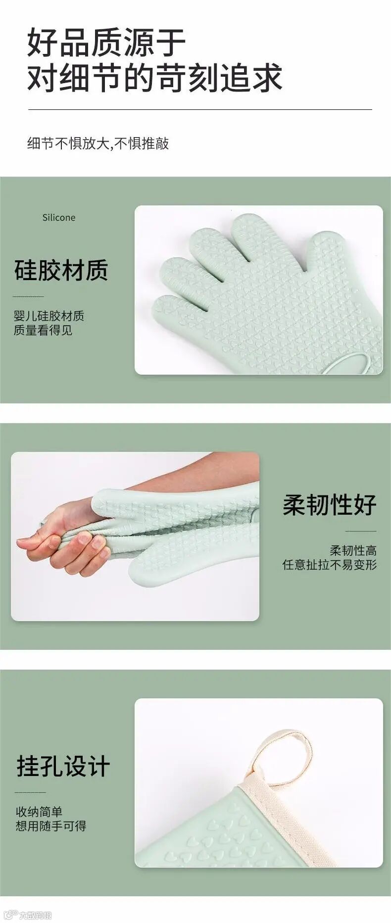 手掌全硅胶设计,左右手通用,让你爱上美食的同时,给足生活仪式感~