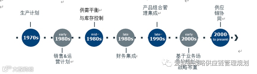 为回答这个问题,我们有必要了解S&OP的演变历史。销售&运营计划从70年代的基本生产计划发展到80年代和90年代的需求、供应和库存管理。这些进步使S&OP在90年代末发展成为一个与战略相结合的综合业务管理流程: