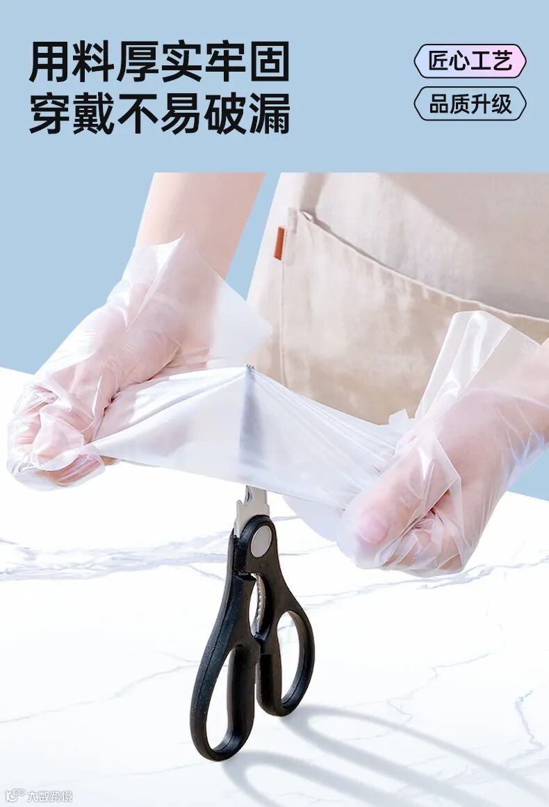 相比普通一次性手套,TPE加厚材质,柔韧性强,不易破损。