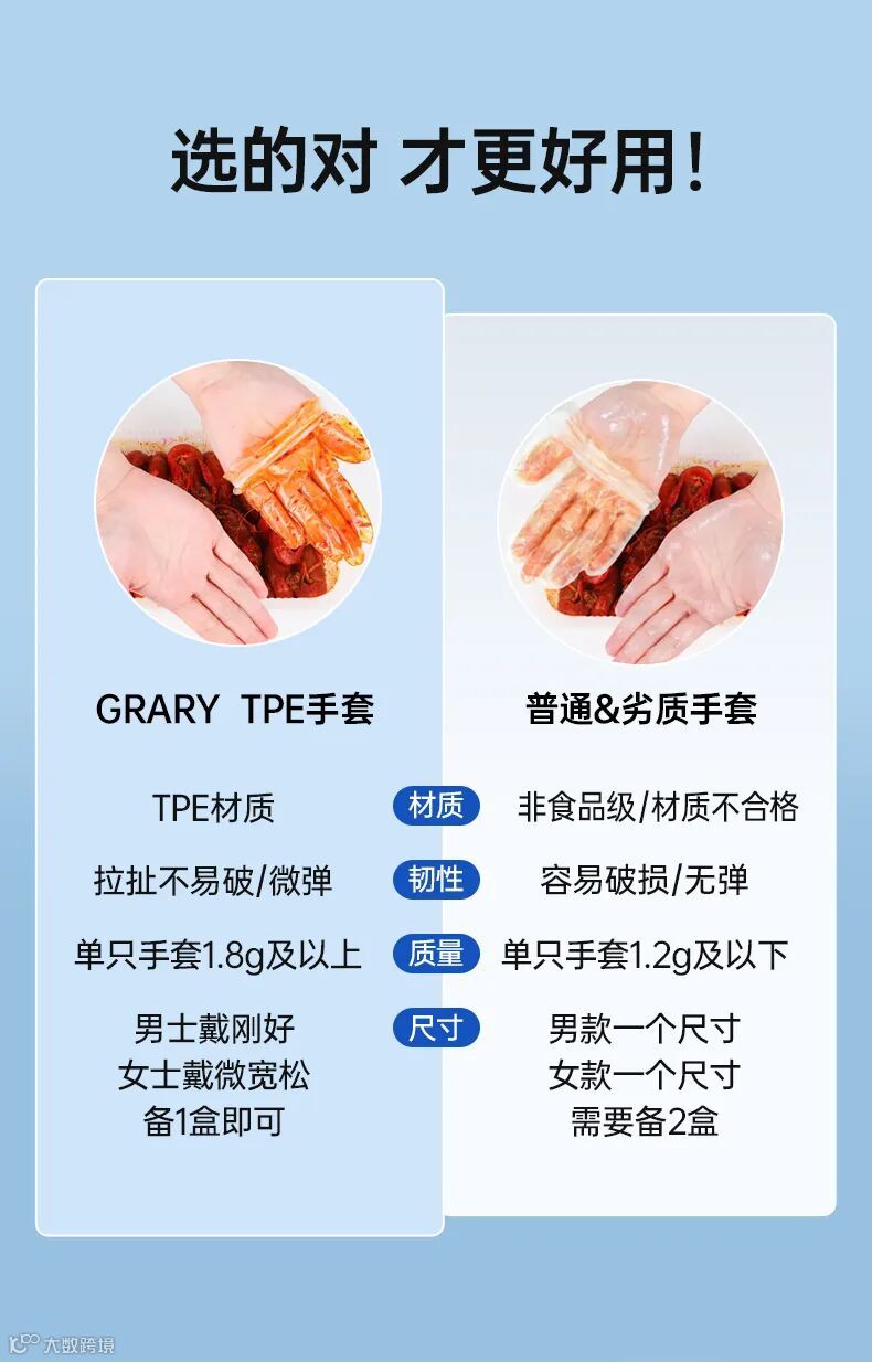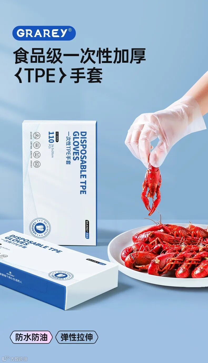 这款GRAREY一次性手套,采用的是TPE加厚材质!