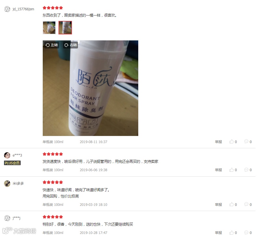 我们也可以来看一下消费者,购买过(鞋袜除臭剂)它的产品,对产品的评价和使用后的效果~