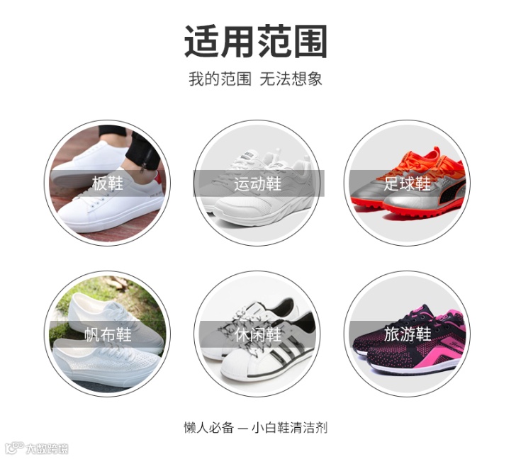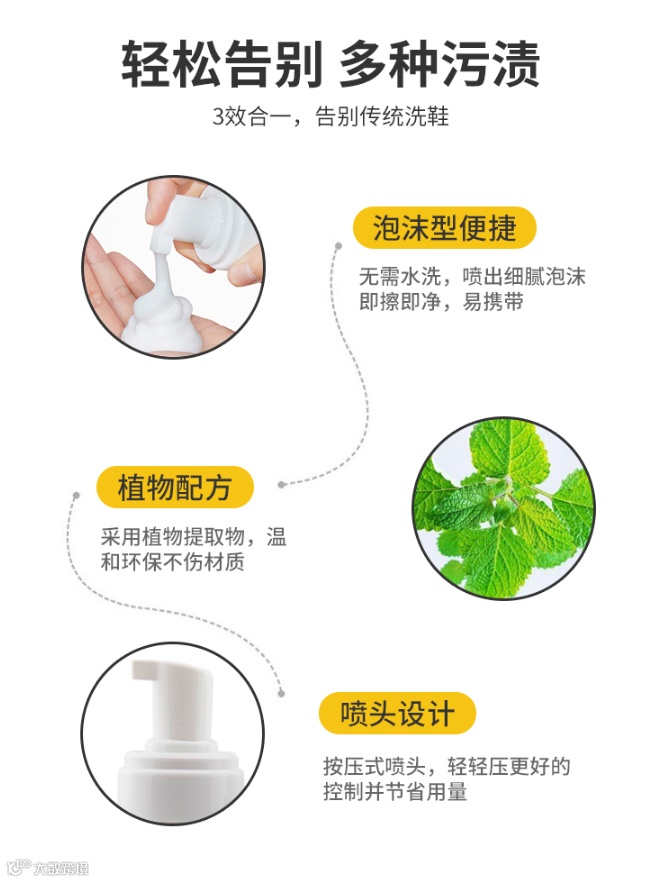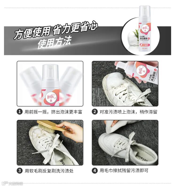 小白鞋干洗剂用途:小白鞋干洗剂 全新泡沫干洗剂,泡沫细腻不伤手,且味道清香,作用:清洁鞋子发黄,发黑,泥土等 (市面上都是老款液体偏多)!