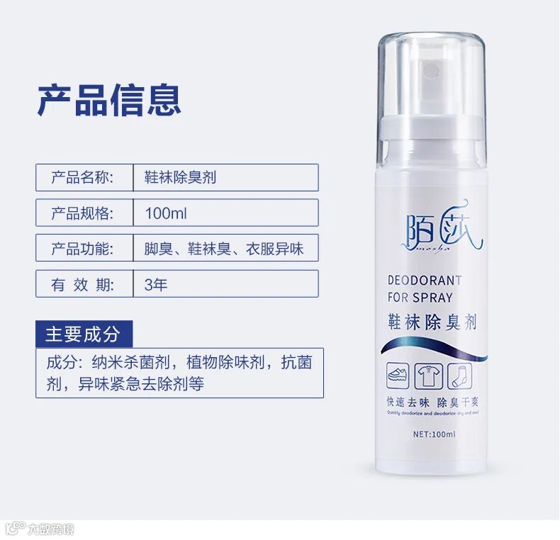鞋袜除臭剂:运动鞋 皮鞋 帆布鞋 臭袜子 鞋柜 衣帽间 脚臭等能够快速清除异味,结算起到杀菌作用!