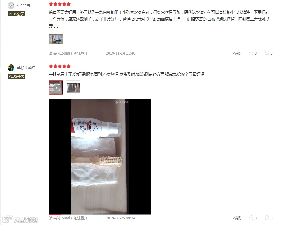 我们也可以来看一下消费者,购买过(小白鞋干洗剂)它的产品,对产品的评价和使用后的效果~