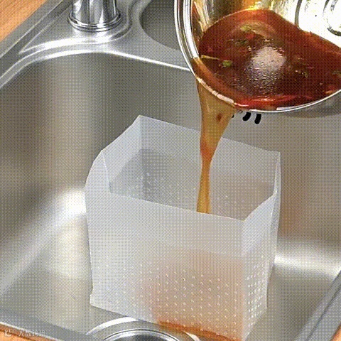 只要将剩菜剩饭剩汤倒入沥水袋