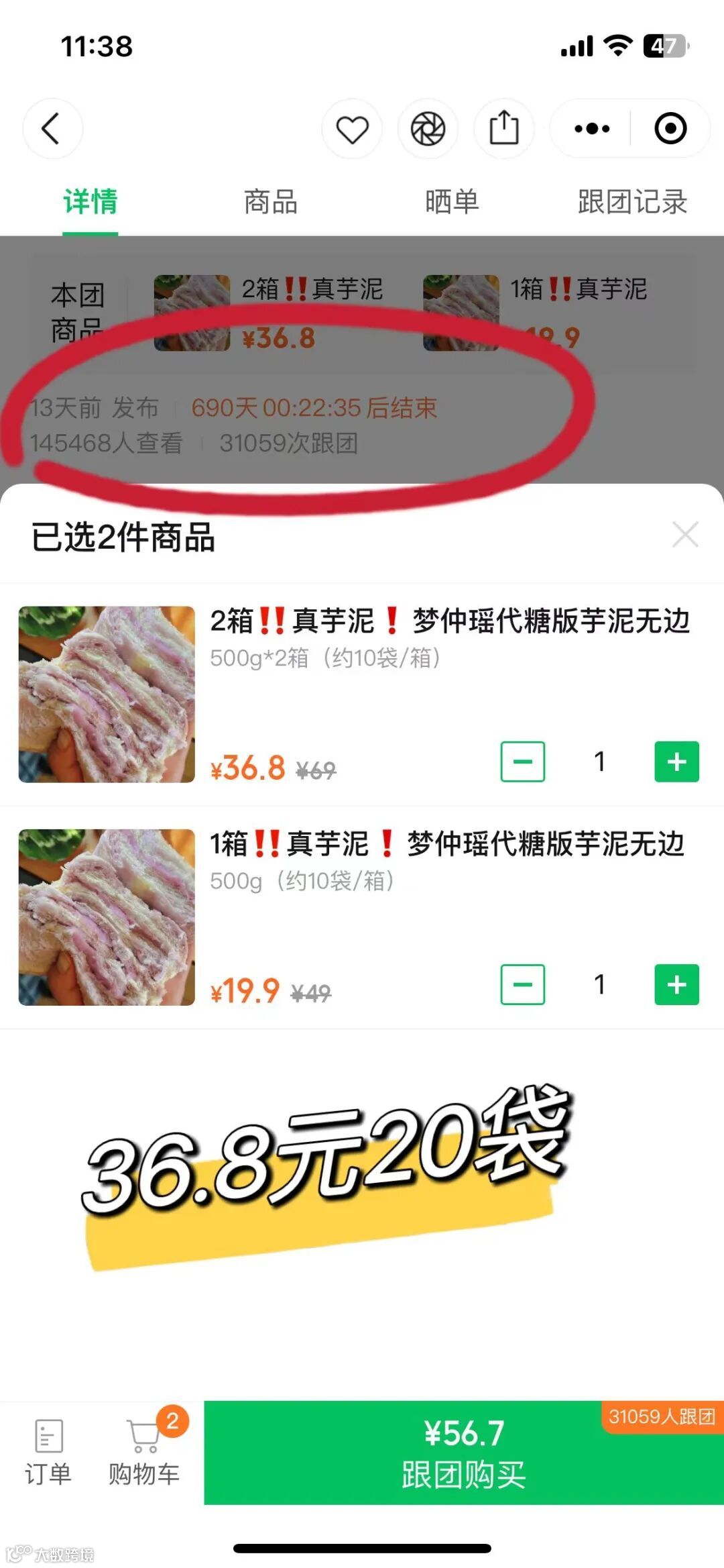 但是36.8元20袋 平均1包1.8元