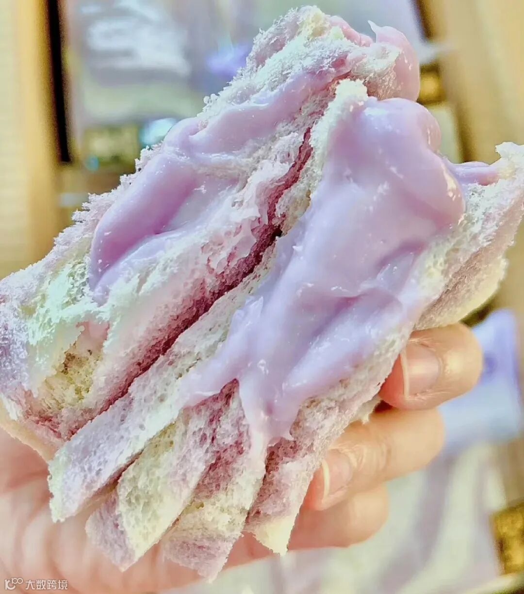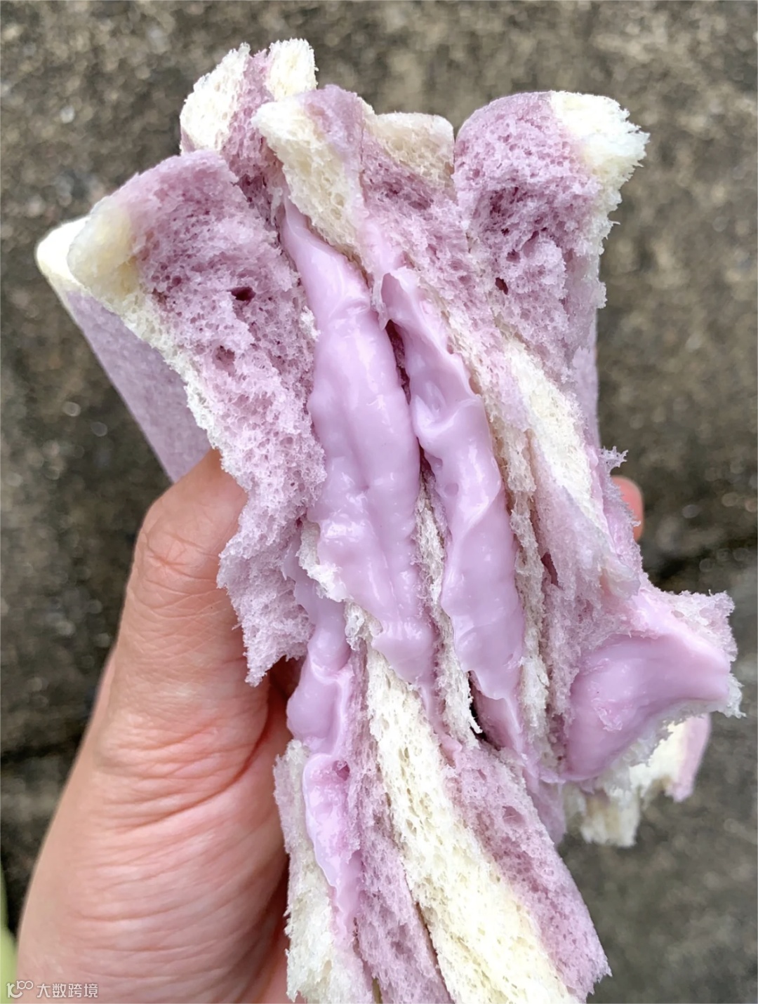 满满的芋泥夹在两片吐司中间