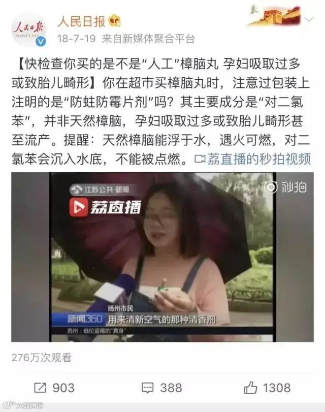 要是不小心再买到人工樟脑丸,甚至对身体有极大的伤害