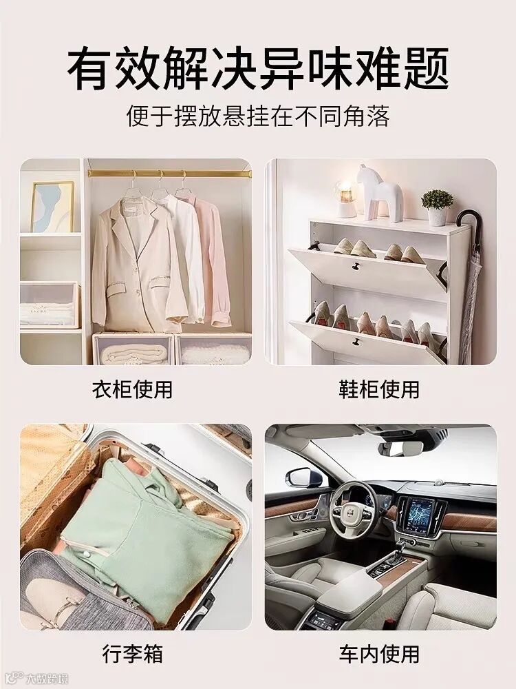 可替换独立小包装,循环使用不浪费~便于摆放悬挂在家居不同角落,解决全屋气味问题