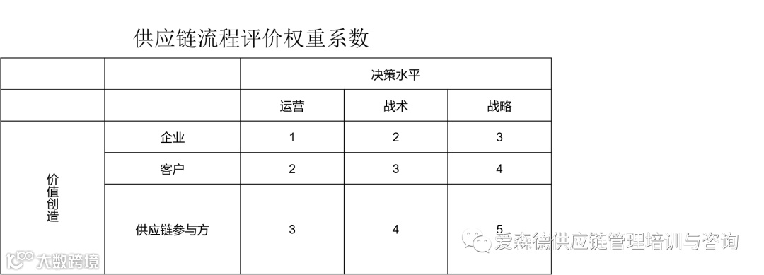 因此,需要根据不同的决策水平对供应链业务流程的成熟度进行定量分析: