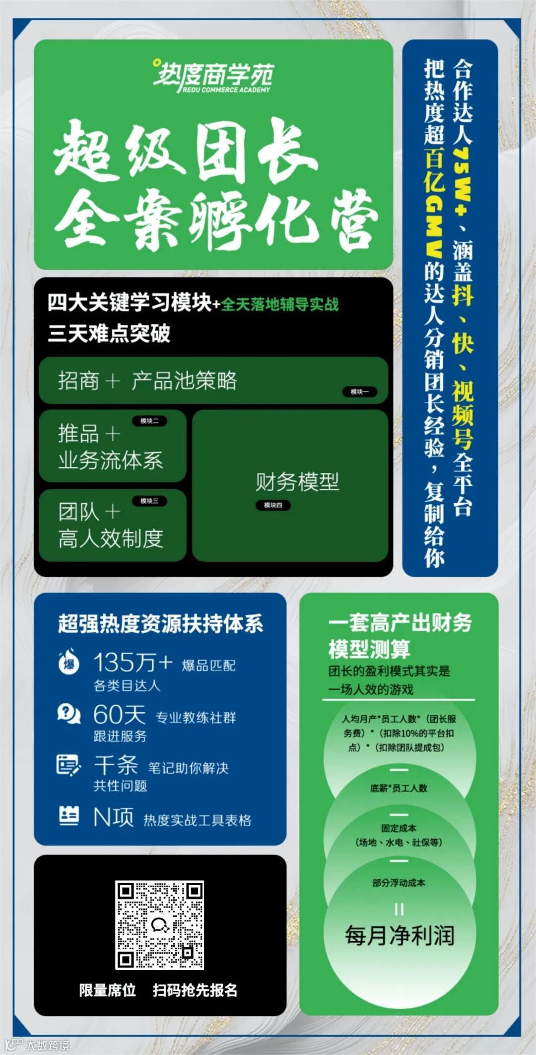 作为热度电商倾力打造的又一大精品课程,超级团长孵化营延续了从实战中来,到实战中去的初心。