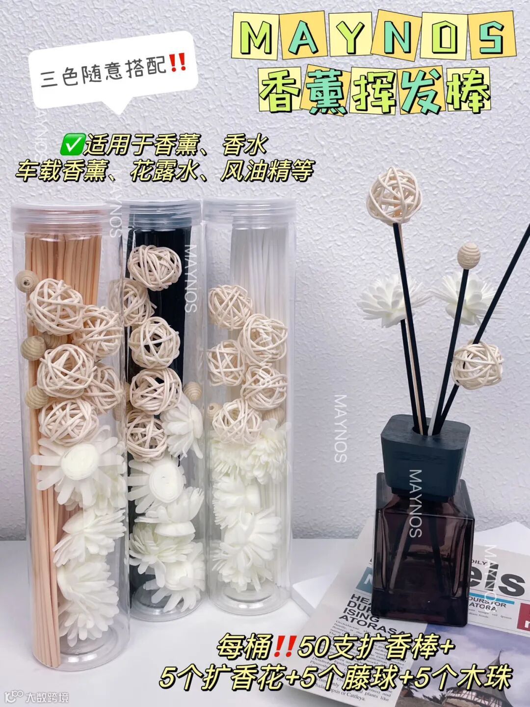 规格:50根香薰扩香棒+5个扩香花+5个扩香藤球+5个扩香木球