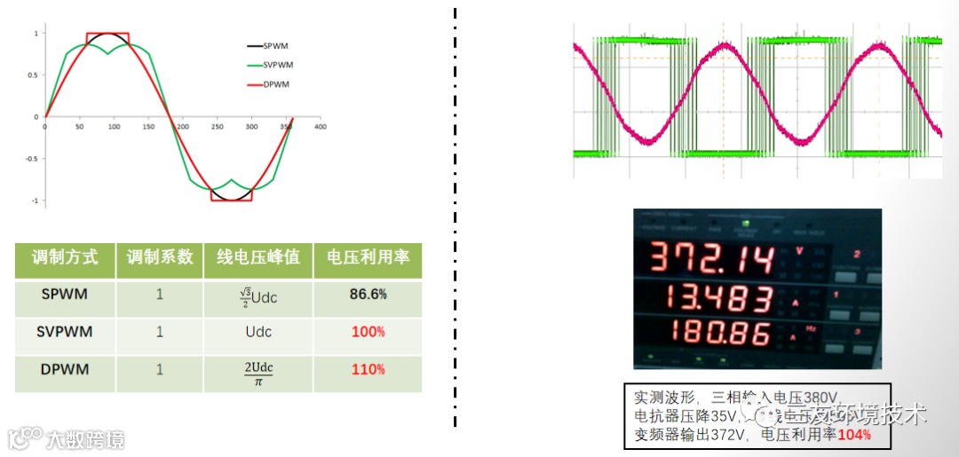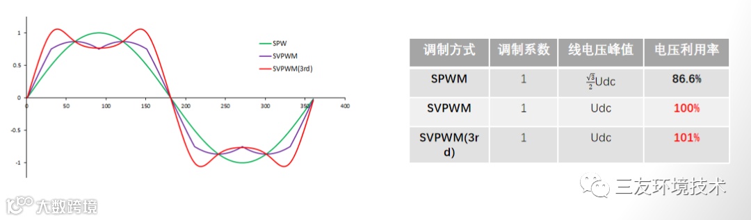 三次谐波注入技术,提高输出电压,减小电机电流,减少整体损耗,提升效率
