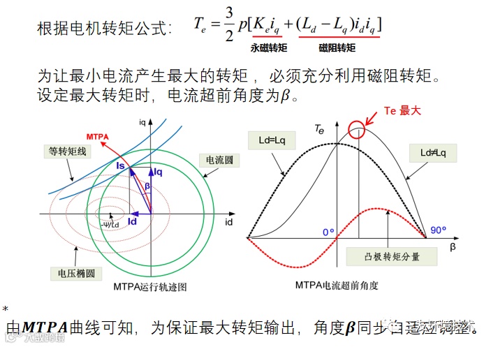 凸极永磁同步电机(Lq > Ld)因转子磁路不对称形成磁阻转矩
