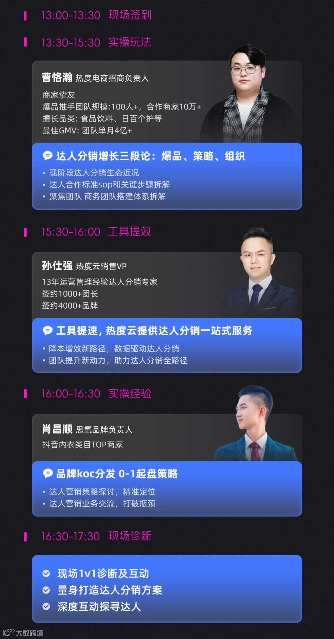 更有诊断互动环节,让您与分销专家面对面,结合现阶段营销成本、效果、挑战等具体情况,为您提供可落地的品牌营销实操方案。