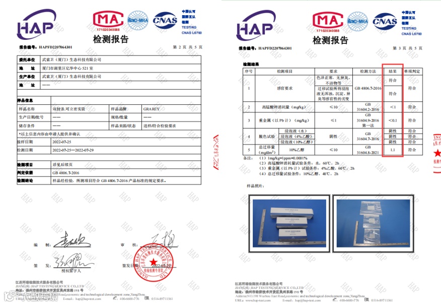 (测试结果表明:袋子不破损,不烧焦,无异味)