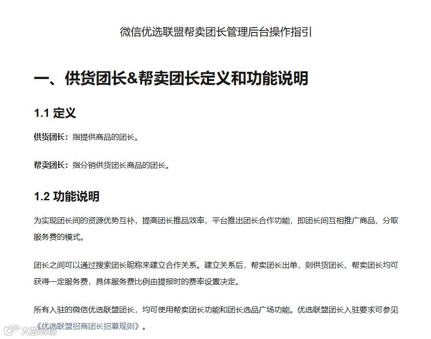 联盟团长是人货撮合的中坚力量,连接商家和达人两端的第三方撮合服务商,促进货品和达人资源的优化配置。随着团长业务的不断增长,视频号官方近日发布公告《微信优选联盟帮卖团长管理后台操作指引》,重新定义了视频号一二级团长合作,该功能已进入内测阶段,预示近期即将上线。